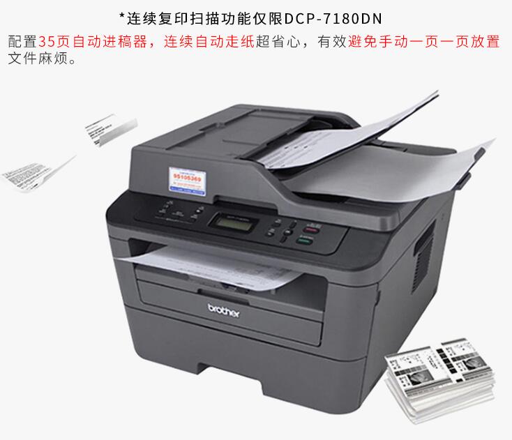 brother兄弟DCP-7080D/7180DN黑白激光打印復(fù)印掃描一體機(jī)三合一自動(dòng)雙面高速打印A4家用辦公復(fù)印機(jī)打印機(jī)