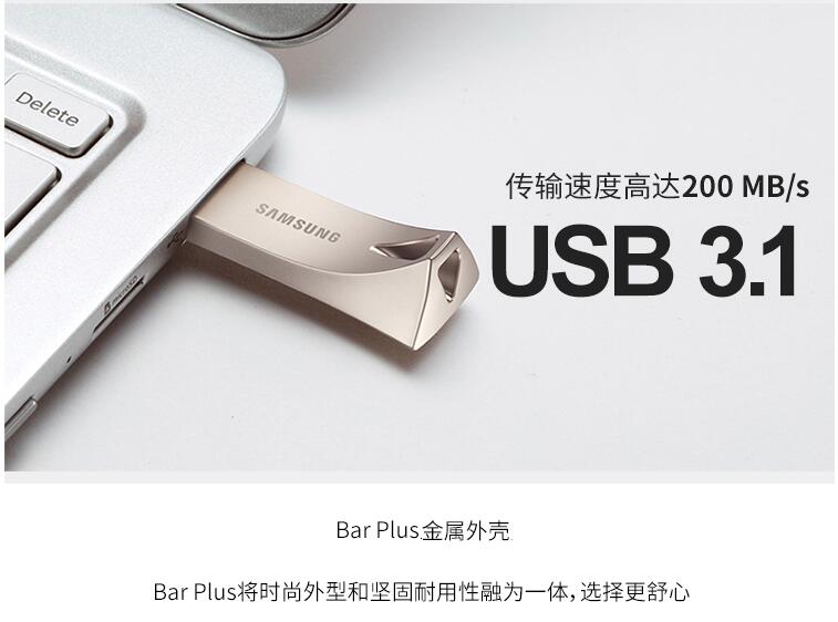 三星Bar PLUS金屬U盤32G閃存盤USB3.1 可定制LOGO圖案讀速200MB/s
