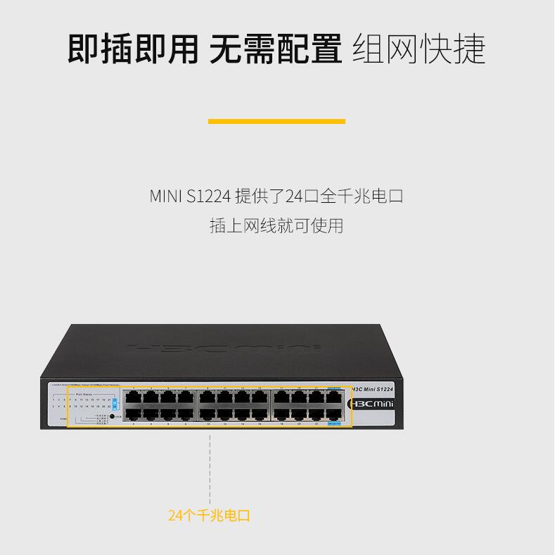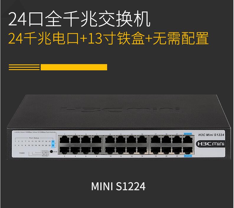 H3C華三Mini S1224 24口全千兆交換機企業(yè)級無管理非網(wǎng)管網(wǎng)絡交換器監(jiān)控防雷分線器替代S1324G