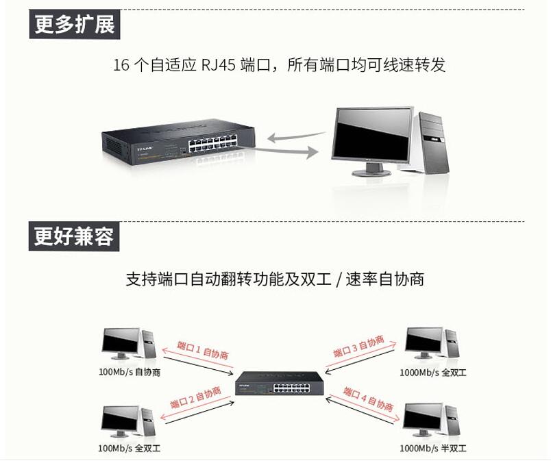 tp-link16口全千兆網(wǎng)絡(luò)交換機(jī)TL-SG1016DT機(jī)架式1000M接口分線器桌面tplink可分12路10個9路光纖監(jiān)控VLAN匯聚