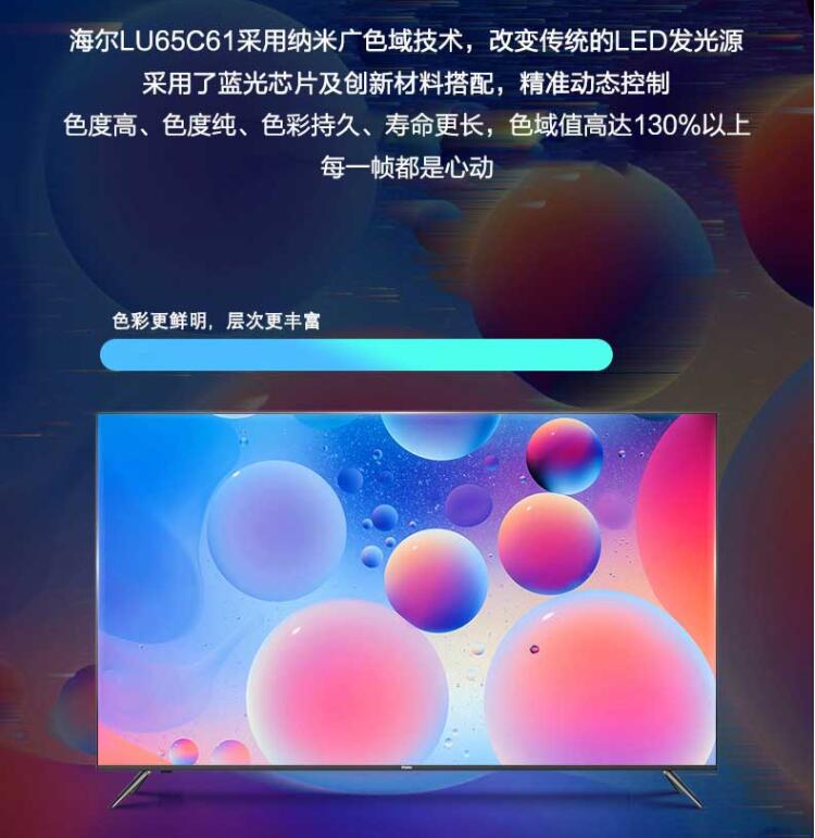 Haier/海爾 LU65C61 65英寸全面屏4K超高清智能網(wǎng)絡液晶電視機